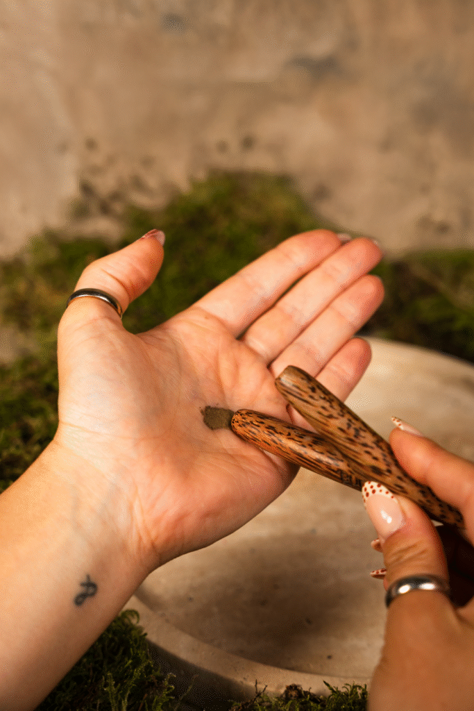 Die Applikatoren werden auf Bali handgefertigt und in heiligen Zeremonien gesegnet. Damit werden lokale Kunsthandwerker:innen fair unterstützt und traditionelle Handwerkskunst erhalten.